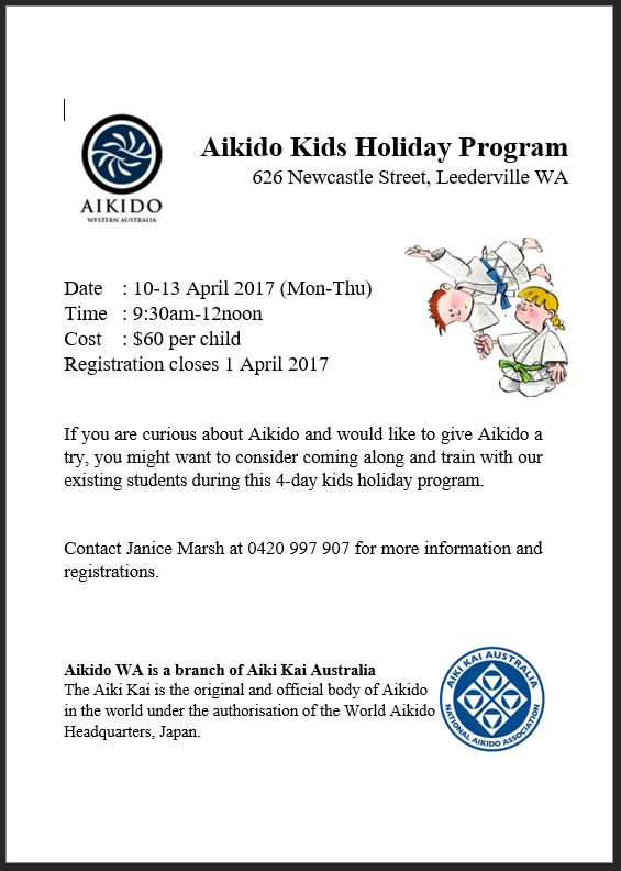 We're pleased to announce our first ever Aikido WA Kids Holiday Program!