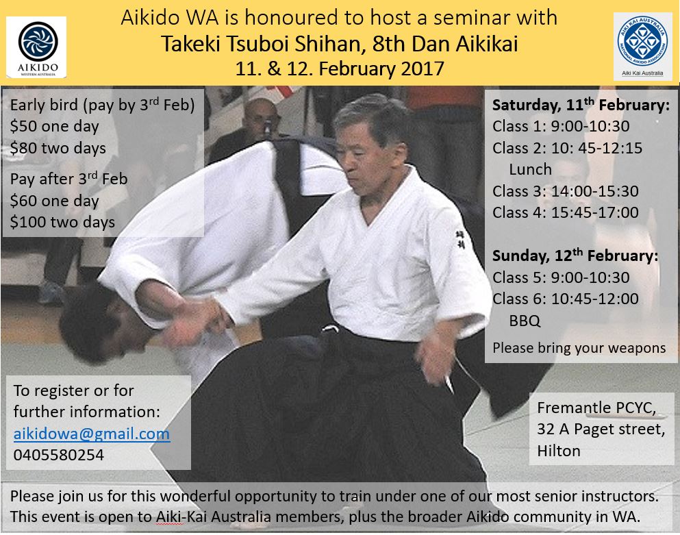 Aikido WA is honoured to host a seminar with Takeki Tsuboi Shihan, 8th Dan Aikikai
